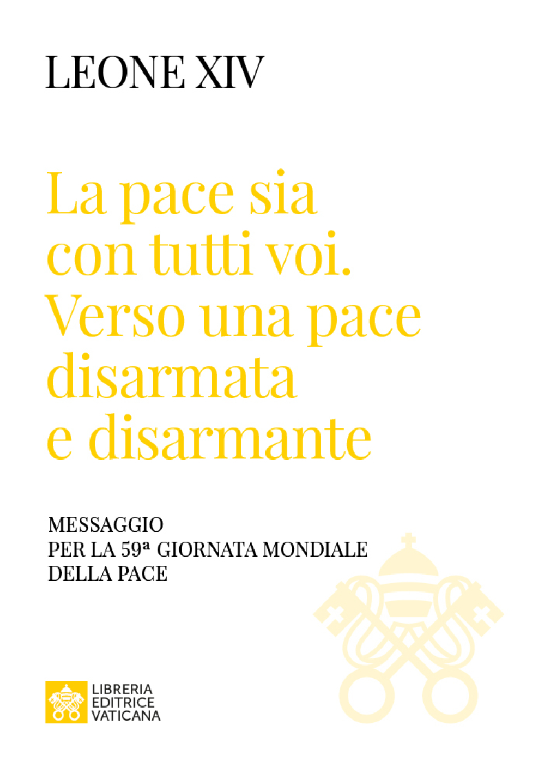 Il tema del messaggio di Papa Leone XIV per la Giornata Mondiale della Pace 2026 invita l’umanità a rifiutare la logica della violenza e della guerra, per abbracciare una pace autentica, fondata sull’amore e sulla giustizia. Essa deve essere disarmata, cioè non fondata sulla paura, sulla minaccia o sugli armamenti; e disarmante, perché capace di sciogliere i conflitti, aprire i cuori e generare fiducia, empatia e speranza. Non basta invocare la pace, bisogna incarnarla in uno stile di vita che rifiuti ogni forma di violenza, visibile o strutturale. Il saluto del Cristo Risorto, «La pace sia con voi» (Cf. Gv 20,19), è un invito rivolto a tutti – credenti, non credenti, responsabili politici e cittadini – a edificare il Regno di Dio e a costruire insieme un futuro umano e pacifico.